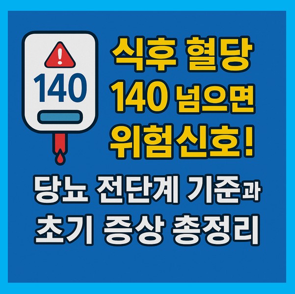 💡 당뇨 전단계 시리즈 1편 "식후 혈당 140이 넘는 순간, 이미 위험 신호는 시작됐습니다.당뇨 전단계, 조기 발견이 곧 평생 건강을 지키는 열쇠입니다."✅ 식후 혈당 140 넘으면 위험신호!당뇨 전단계 기준과 초기 증상 총정리 “그냥 좀 피곤한가 보다”, “나이 들면 다 그래”…혹시 요즘 식사 후 유난히 졸립고, 손발이 저리고, 입이 마르진 않나요?이런 증상, 방치하면 ‘진짜 당뇨’로 이어지는 조용한 시작일 수 있습니다.**당뇨 전단계(Prediabetes)**는 당뇨병 진단까지는 아니지만,이미 우리 몸속 대사 균형이 무너지고 있다는 명백한 경고입니다.그리고 안타깝게도 10명 중 7명은 자신이 이 상태인 줄도 모릅니다.지금부터 누구보다 빠르게 이 신호를 알아채야 할 때입니다.1. 당뇨 전단계란?“..