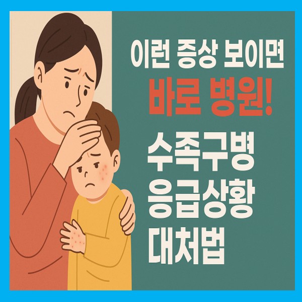 .🌸 봄철 영유아 수족구병 주의 시리즈 5편"이 증상 보이면 바로 병원! 수족구병 응급상황 대처법 총정리" "지금 바로 병원에 가야 할 수 있습니다. 수족구병, 응급상황에서의 행동 매뉴얼을 꼭 확인하세요!""아이가 열이 나고 잘 먹지 않아요.""발진이 생겼는데 오늘 유독 무기력해요.""자다 일어나서 경련을 했어요…"이 중 하나라도 해당된다면,수족구병이 단순한 감염병이 아닌 중증 합병증으로 진행 중일 수 있습니다.✅ 부모의 빠른 판단과 대응이아이의 회복 속도와 후유증 여부를 결정짓습니다.수족구병, 언제 병원에 가야 할까?보통은 가정에서 충분한 수분 섭취와 휴식만으로 회복이 가능하지만,다음 증상 중 하나라도 있다면 ‘지체 없이 병원’입니다.🚨 응급상황 체크리스트증상 가능성 있는 합병증🔥 고열이 3일 이..