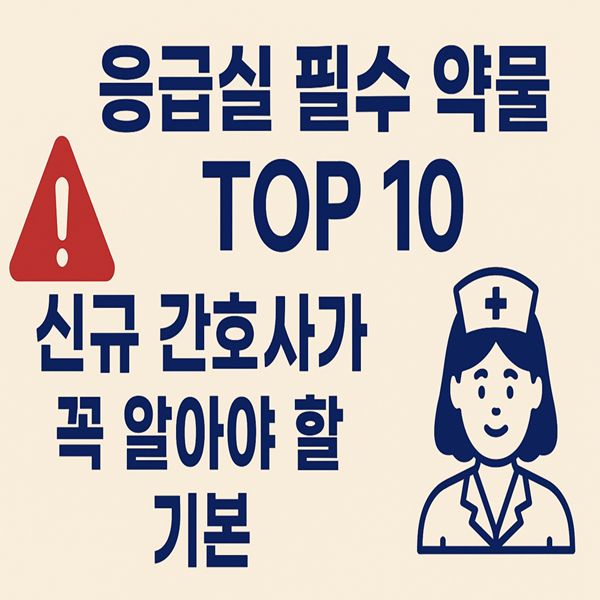 《응급약물 완전정복 시리즈》1편🚨 응급실 필수 약물 TOP 10 – 신규 간호사가 꼭 알아야 할 기본2편💉 심정지 상황에서 사용하는 응급약물 – 에피네프린부터 아미오다론까지3편⚡ 쇼크 유형별 응급약물 – 저혈량, 아나필락시스, 패혈성 쇼크 대응법4편🫁 호흡곤란 환자 응급약물 – 기관지 확장제부터 스테로이드까지5편🩺 부정맥 환자 응급약물 – 아트로핀, 리도카인, 마그네슘 황산염 정리6편💊 경련·발작 시 사용되는 응급약물 – 디아제팜부터 레버티라세탐까지7편🧠 고혈압성 위기, 뇌출혈 의심 시 응급약물 투여 가이드8편📦 응급카트 약물 구성 완전 해부 – 약물별 용도와 위치까지!9편✅ 약물 투약 실수 방지를 위한 응급상황별 리마인드 체크리스트10편👩‍⚕️ 신규 간호사를 위한 응급약물 Q&A – 실무..