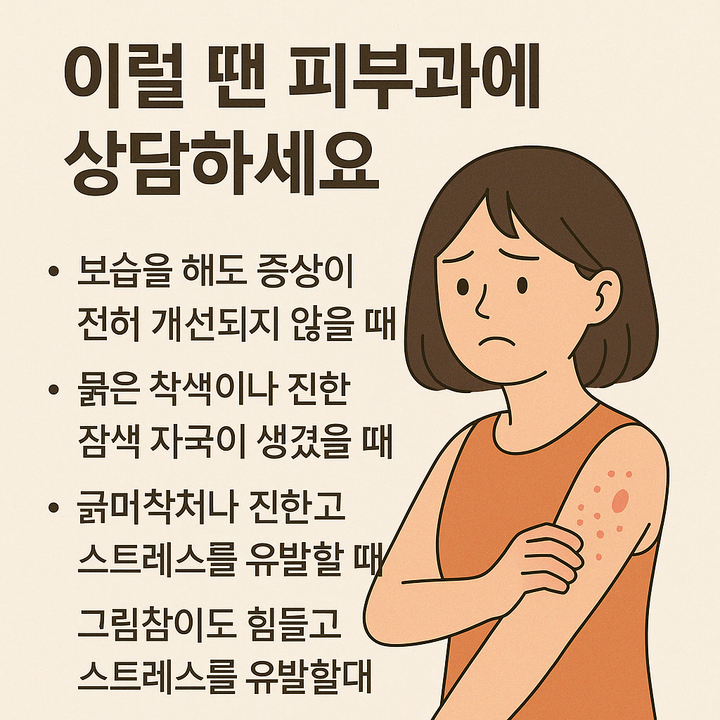 | 피부과 내원 시기 | 증상 심화, 착색, 상처 동반 시 |