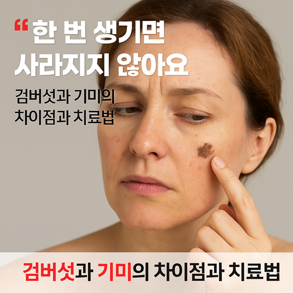 기미는 화장품·약물로 완화 가능하지만, 검버섯은 시술 없이는 제거 불가합니다.
