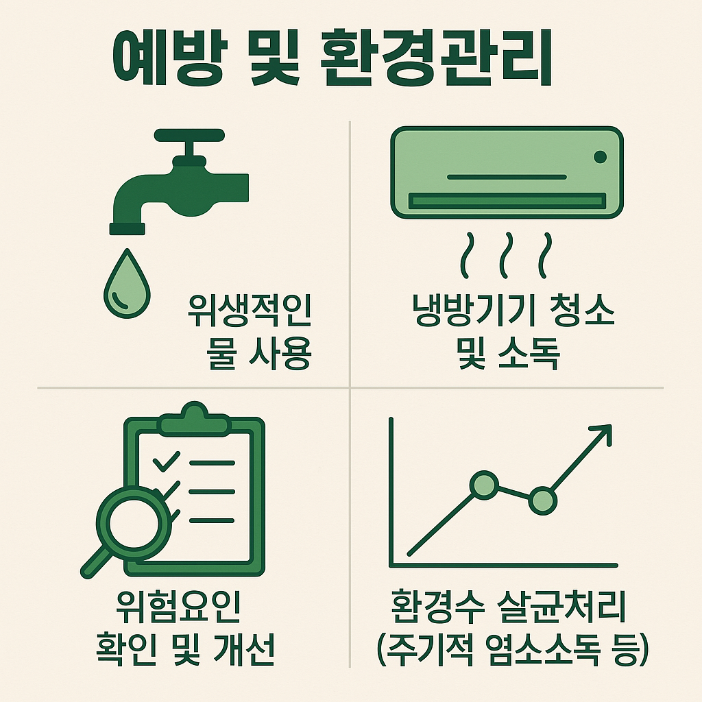 특히 고위험군 환자를 많이 접하는 병원, 요양시설, 재활기관에서는 레지오넬라균 감염 예방체계를 주기적으로 점검해야 합니다.