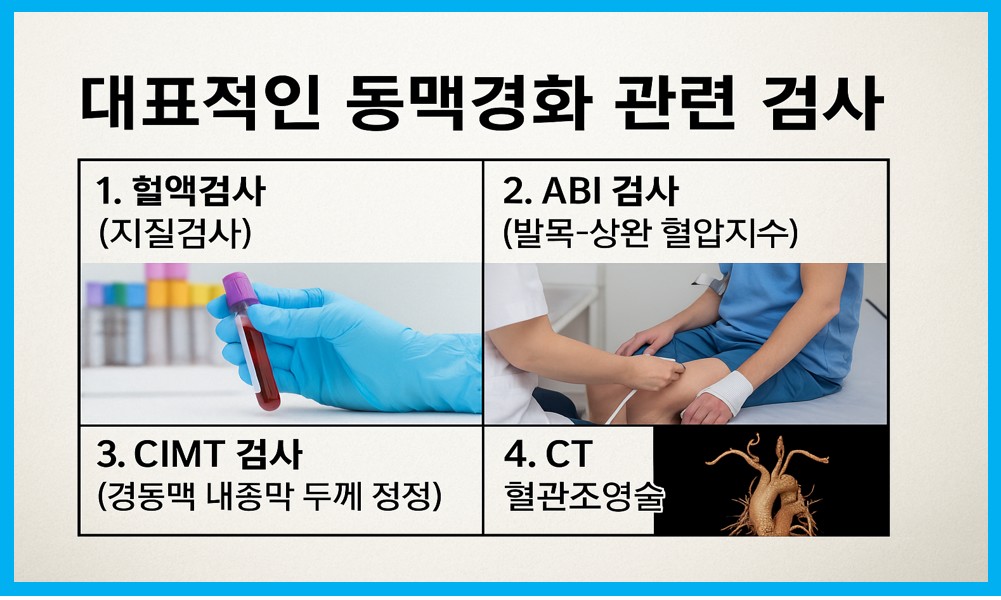 – 혈중 수치가 높으면, 동맥벽에 지방이 쌓일 가능성이 큽니다. - ABI 검사 (발목-상완 혈압지수)