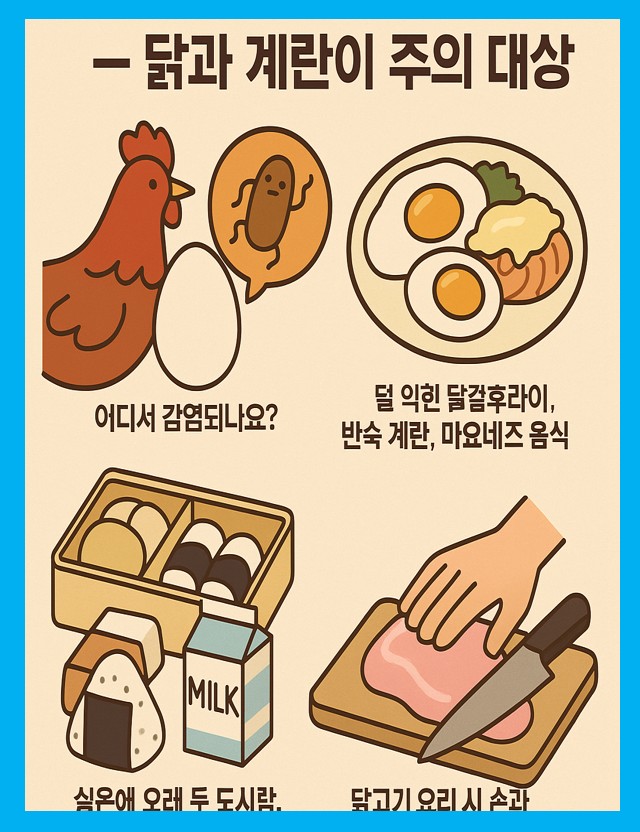 🛑 살모넬라는 냉장 보관해도 죽지 않아요. 반드시 익혀야 해요!