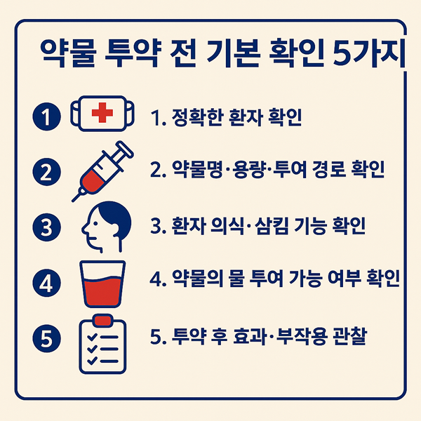 2️⃣ 약물 투약 전 기본 확인 5가지