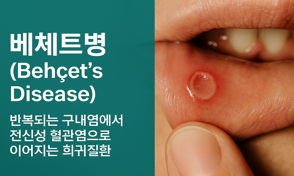 베체트병(Behçet’s disease)은 전신성 혈관염으로, 몸속 혈관에 만성적인 염증이 생기는 희귀 질환입니다. 단순히 입안에 생기는 궤양으로 시작되는 경우가 많지만, 시간이 지남에 따라 눈, 피부, 관절, 심지어 신경계와 소화기까지 침범할 수 있습니다.