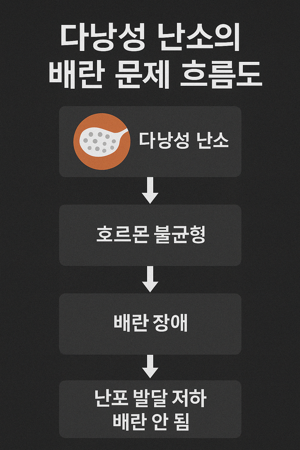 | 🔸 호르몬 불균형 | 여성호르몬이 줄고, 남성호르몬(안드로겐)이 증가하여 난자 발달 저해 |