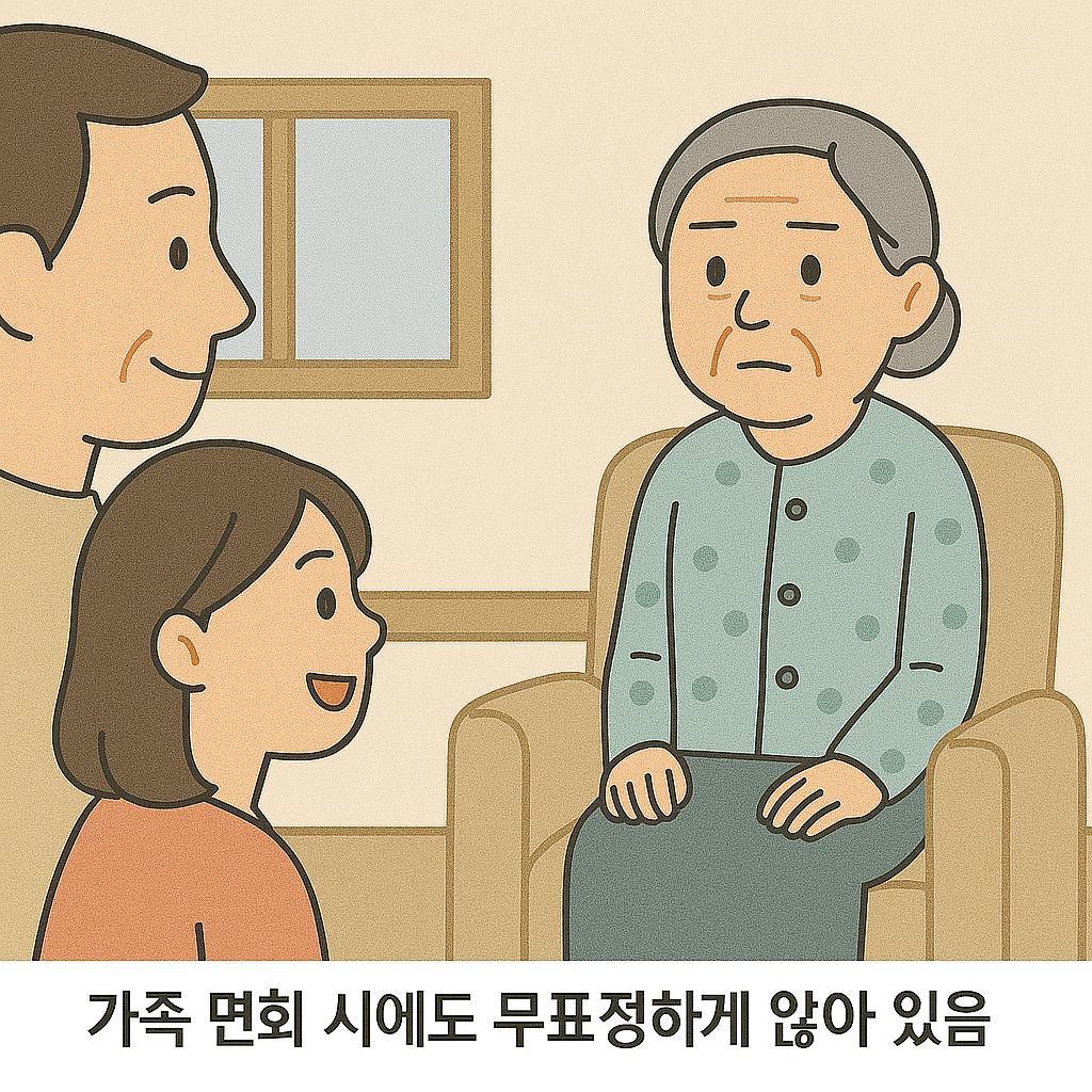 - "가족 면회 시에도 무표정하게 앉아 있음"