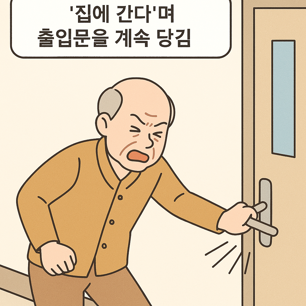 - 정의: 목적 없이 돌아다니거나 외출하려는 행동을 반복함