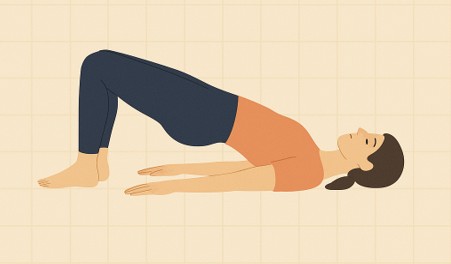 - 무릎을 세우고 누운 상태에서 엉덩이를 천천히 들어 올립니다.