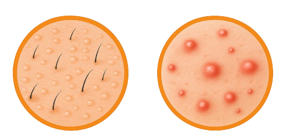 - 각질형성세포(케라틴)의 과잉 생성으로 모공 입구 막힘