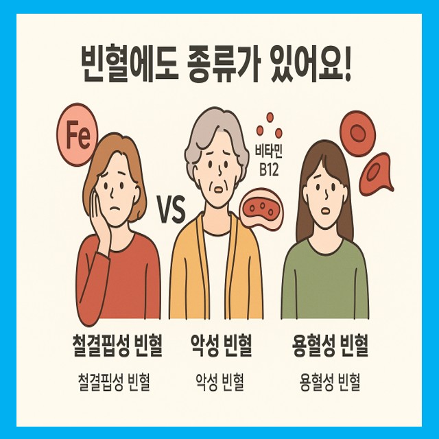오늘은 대표적인 3가지 빈혈 유형인 철결핍성 빈혈, 악성빈혈, 용혈성빈혈을 쉽게 비교해서 이해해보겠습니다.