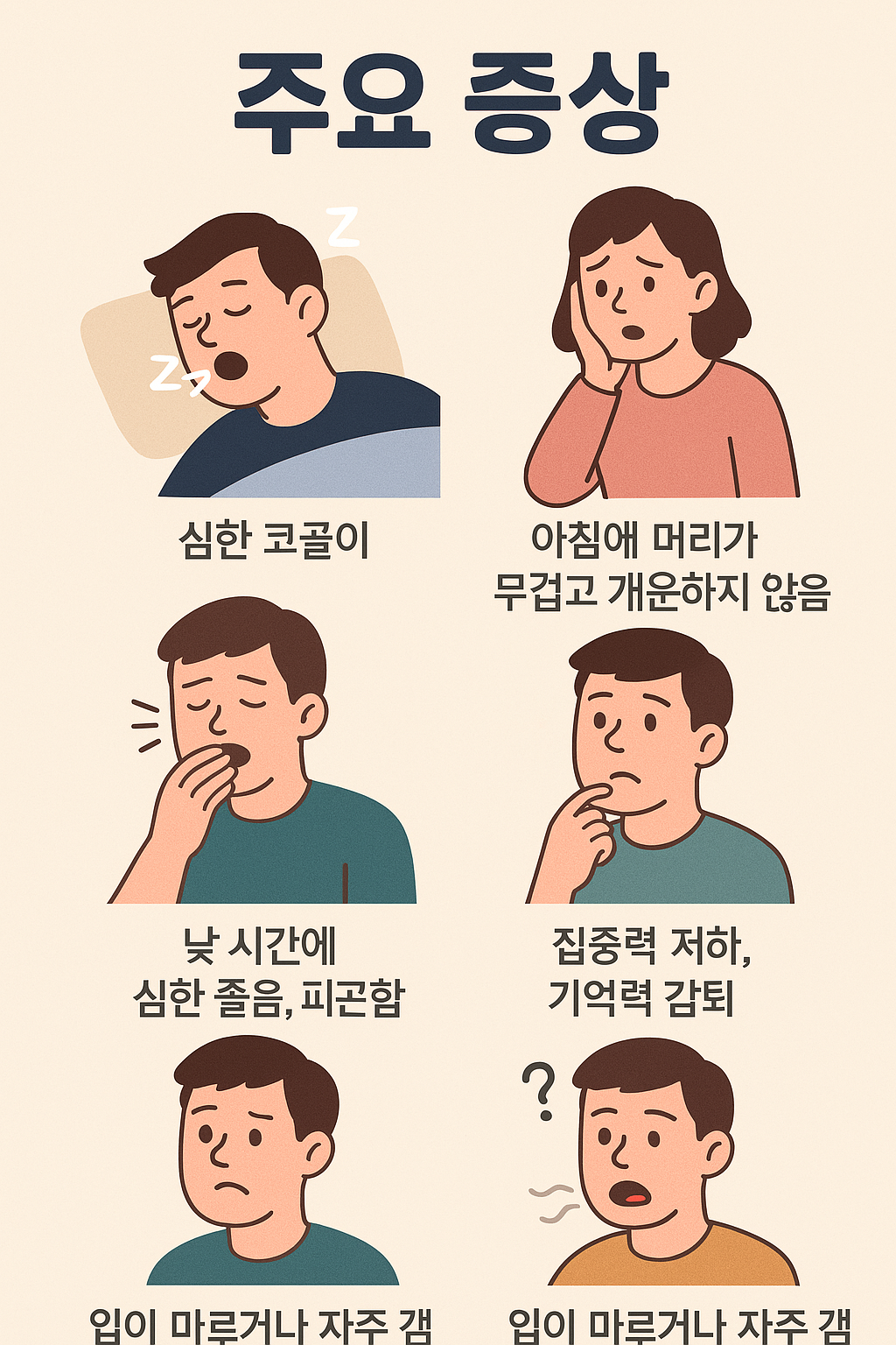 수면무호흡증이 의심된다면 다음과 같은 증상이 나타날 수 있습니다:
