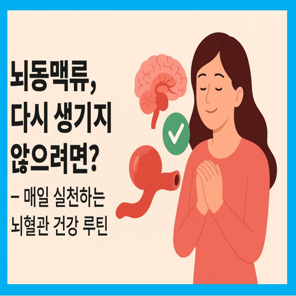 💬 "이제 어떻게 살아야 하죠?"뇌동맥류 수술을 무사히 마친 민정 씨(55세)는퇴원 후에도 늘 조심스럽습니다.“식사는 어떻게 해야 하지?”, “운동은 어느 정도?”,“스트레스를 받으면 다시 생길까?”모든 생활이 불안과 질문으로 가득합니다.의사도 말했습니다.“뇌동맥류는 다시 생길 수 있습니다.뇌혈관 건강은 매일의 습관이 결정합니다.” 🧠 뇌동맥류, 다시 생기지 않으려면? – 매일 실천하는 뇌혈관 건강 루틴 시리즈 5편 | 수술 후, 혹은 예방이 필요한 분들을 위한 실천 가이드 1. 뇌동맥류, 재발을 막기 위한 핵심 키워드 4가지핵심설명혈압 조절고혈압은 뇌혈관 벽을 약하게 만듭니다.흡연·음주 금지담배와 술은 혈관 내막을 손상시킵니다.스트레스 관리급격한 혈압 상승의 주요 원인입니다..