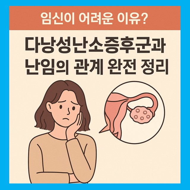 🍼 임신이 어려운 이유? 다낭성난소증후군과 난임의 관계 완전 정리!"생리를 해도 배란이 안 된다면?""난임의 원인 중 가장 흔한 이유가 다낭성난소증후군이라는 사실, 알고 계셨나요?"1. 다낭성난소증후군(PCOS)이란?다낭성난소증후군은 가임기 여성(보통 15~44세 사이)에게 가장 흔하게 발생하는 호르몬 질환입니다.난소에 **여러 개의 미성숙 난포(물혹)**가 생기고 배란이 제대로 일어나지 않는 상태를 말합니다. 2. 왜 임신이 어려워지나요?임신을 하려면 배란이 먼저 되어야 합니다.그런데 다낭성난소증후군이 있으면 다음과 같은 문제들이 생깁니다: 문제 설명🔸 배란 장애난자가 성숙하지 않아 배란이 안 됨. 생리 주기만 돌아가는 ‘무배란 생리’가 많음🔸 호르몬..